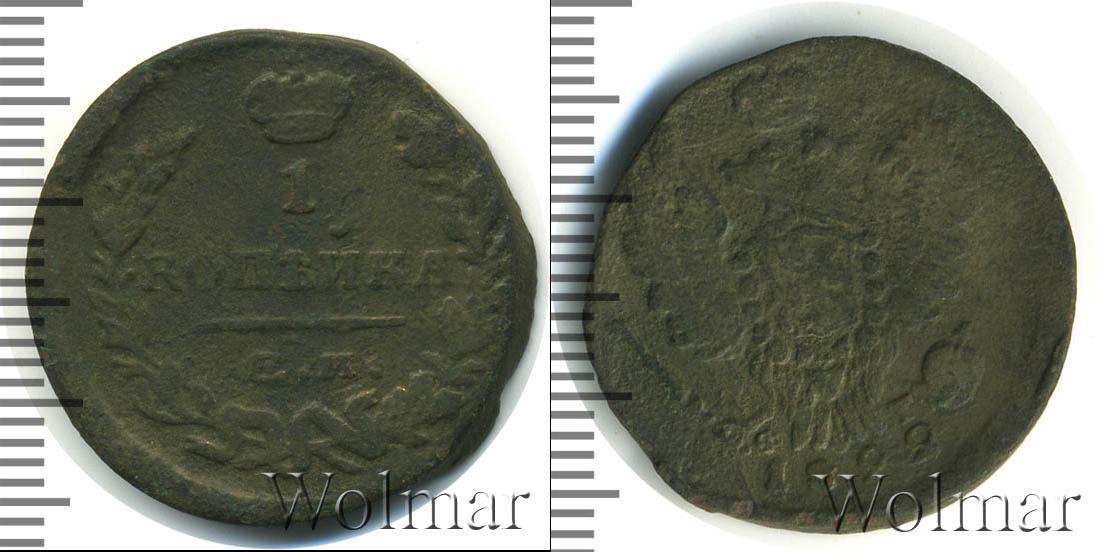 В центре диска расположен Государственный герб Российской Империи. Внизу отмечены инициалы минцмейстера Франца Германа. Рядом указание на дату эмиссии монеты – 1822.