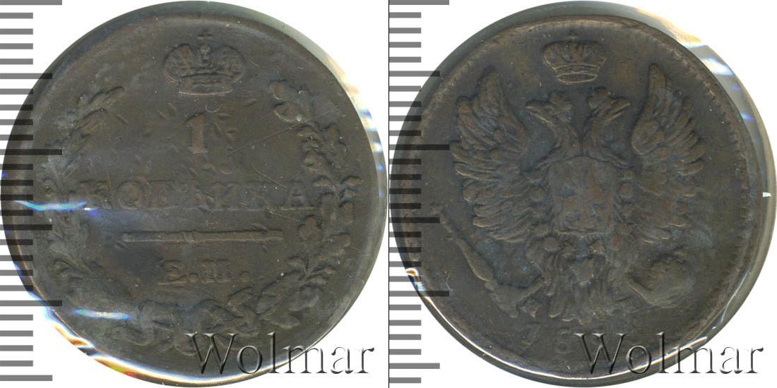 1825 Деформация, пятна, легкая коррозия. Копейка ЕМ ИК