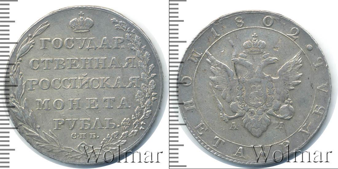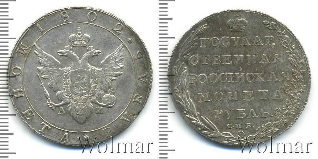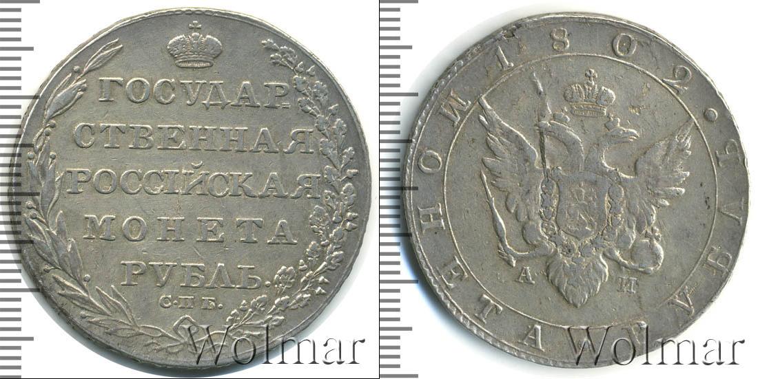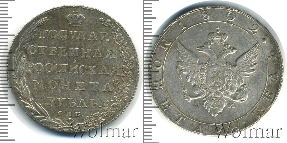 Диск условно поделен на два сегмента тонкой линией. Она заключает в круг изображение государственной геральдики. Гравюра двуглавого орла с расправленными крыльями дополнена инициалами минцмейстера. «А», «И» написано возле символа Империи – скипетра и державы. Аббревиатура означает первые буквы имени Александра Иванова. Внешнее кольцо украшено радиальной надписью «1802* МОНЕТА * РУБЛЬ».