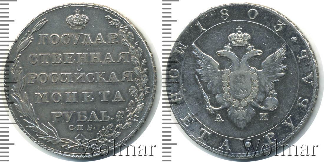 В центре диска выгравирован коронованный двуглавый орел. В лапах геральдического символа изображены скипетр и держава. Возле лап и хвоста птицы написаны инициалы Александра Иванова - минцмейстера монетного двора в Санкт-Петербурге - «А» «И». Периметр легенды окружает круговая надпись «1803 * МОНЕТА * РУБЛЬ», очерченная кругом.