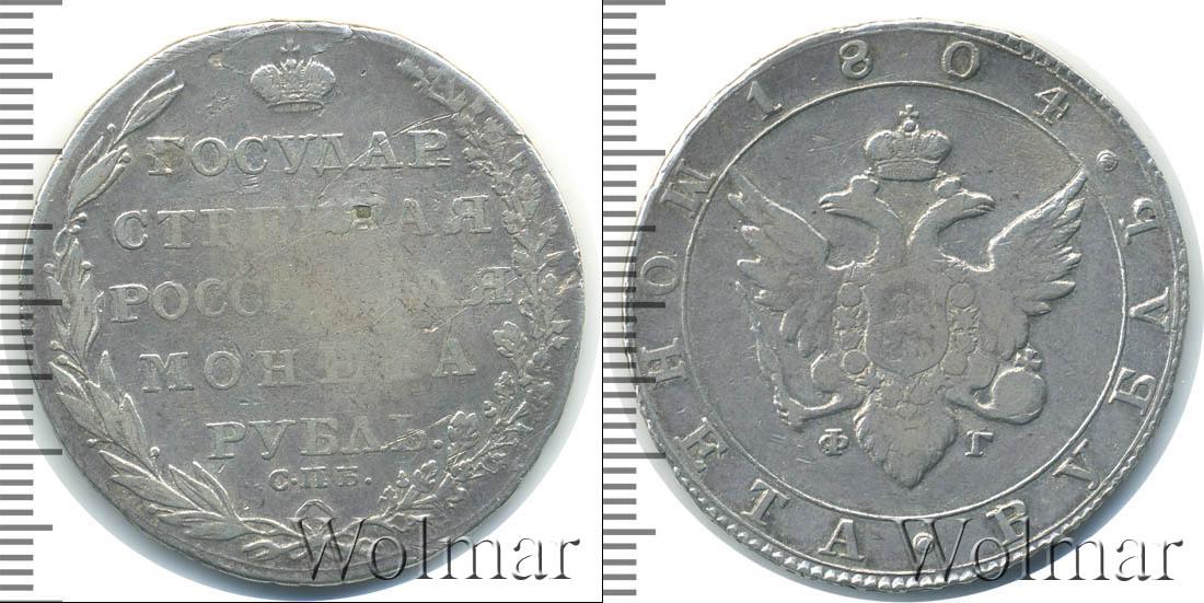 Вдоль гурта радиально написано «1804 * МОНЕТА * РУБЛЬ». Двуглавый орел с расправленными крыльями заключен в круг. Над головами птицы выгравирована корона, в лапах – скипетр и держава. Под государственной геральдикой написаны инициалы Федора Гальмана – минцмейстера монетного двора. «Ф» и «Г» расположены по обе стороны от хвоста орла.