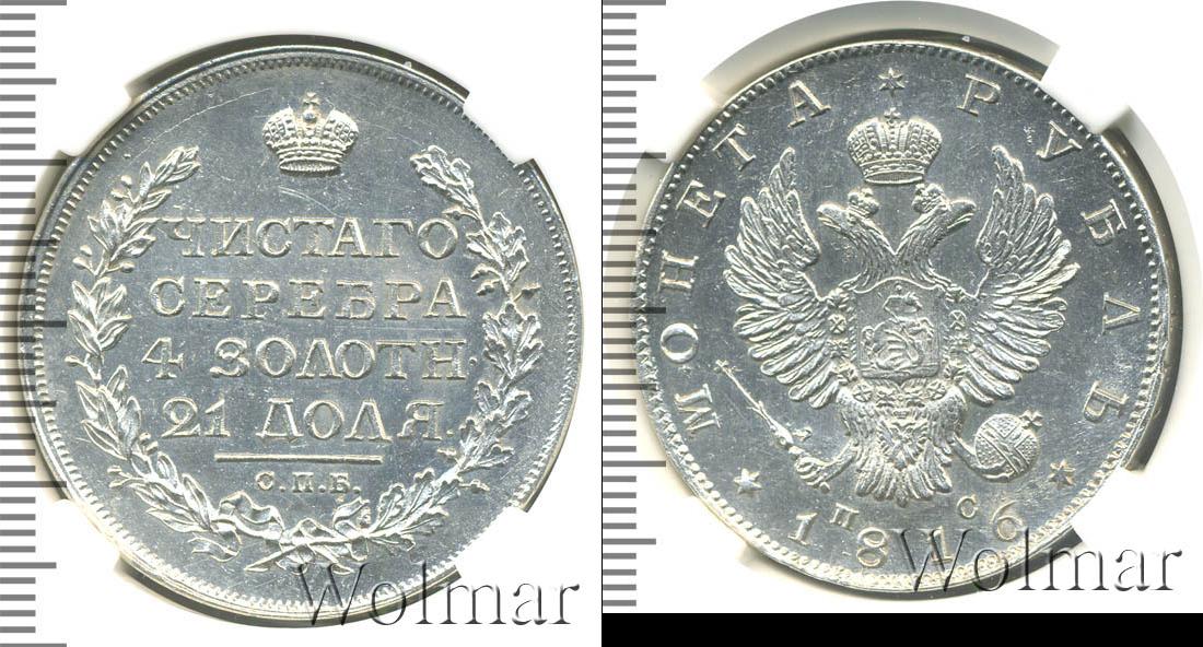 Имперская корона изображена над головами двуглавого орла. Геральдический символ Российской Империи держит в лапах скипетр и державу. Аббревиатура «МФ» указана под птицей и означает инициалы Михаила Федорова. Край легенды украшен рельефным узором с зубчиками. Вдоль него изогнутой линией написано «МОНЕТА», «РУБЛЬ», «1816».