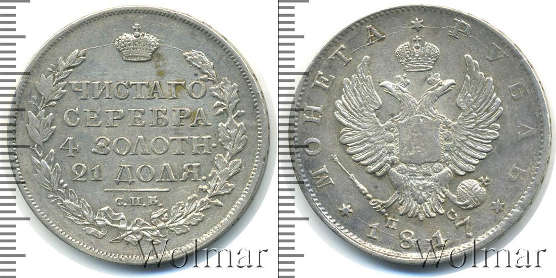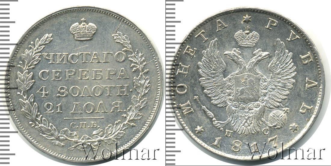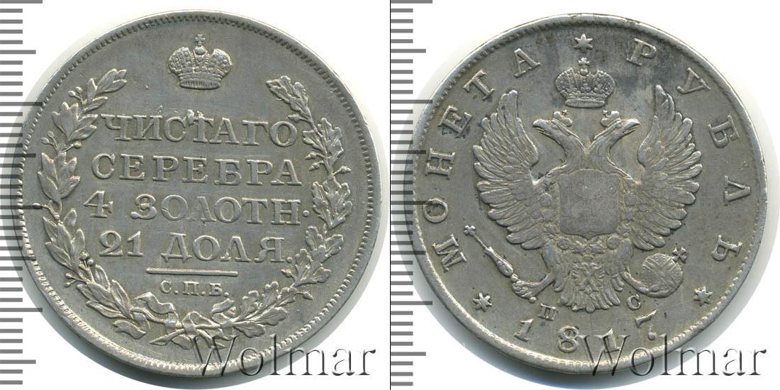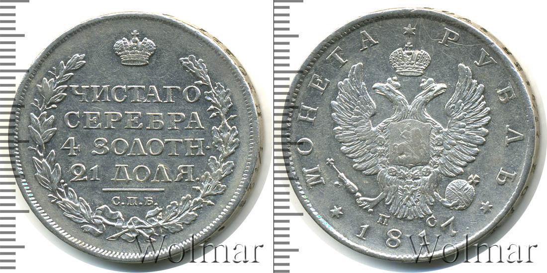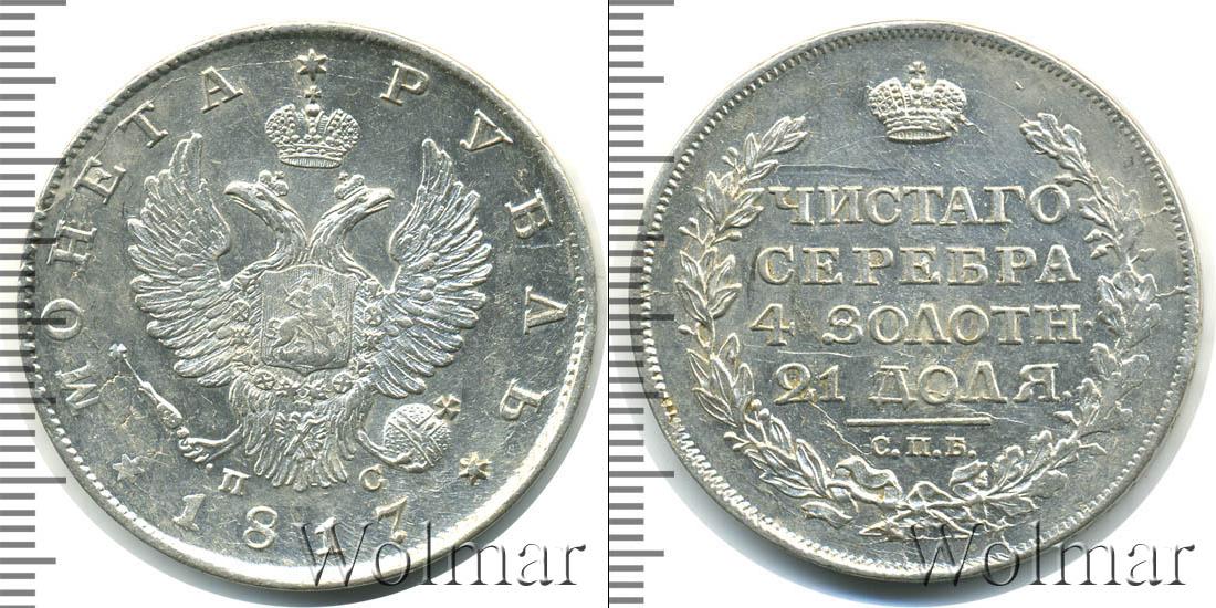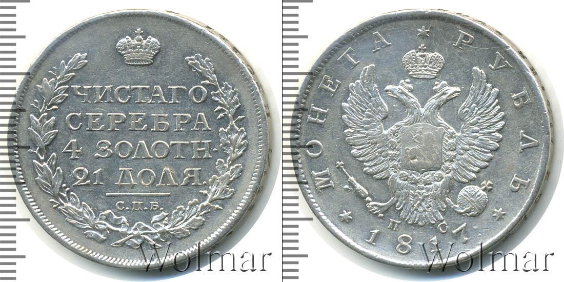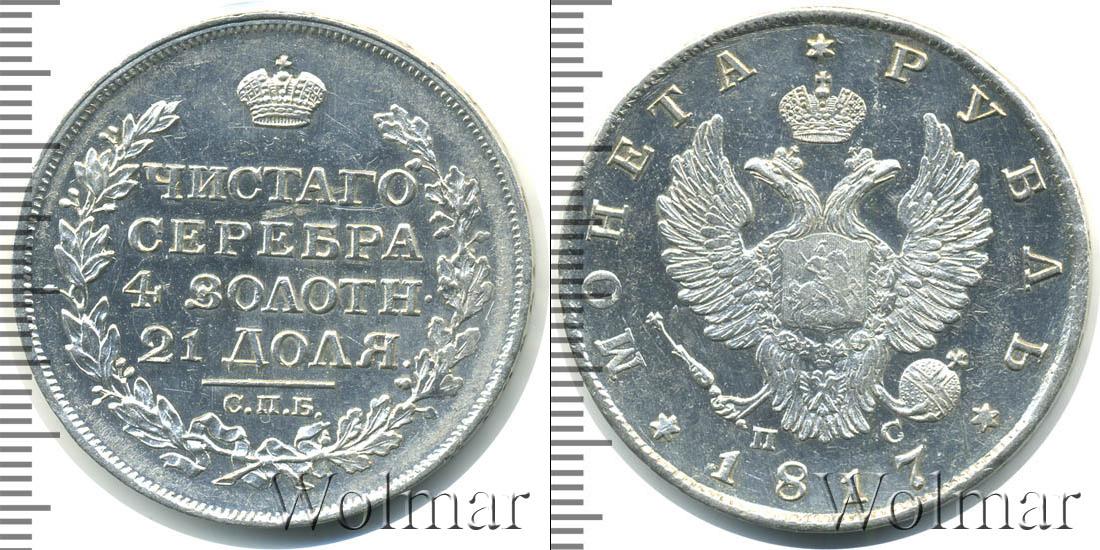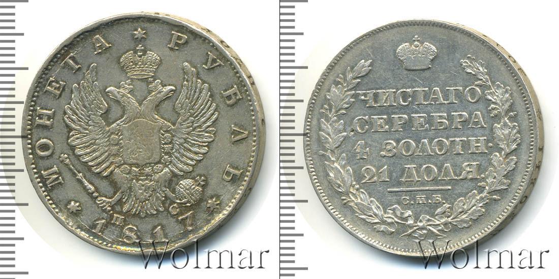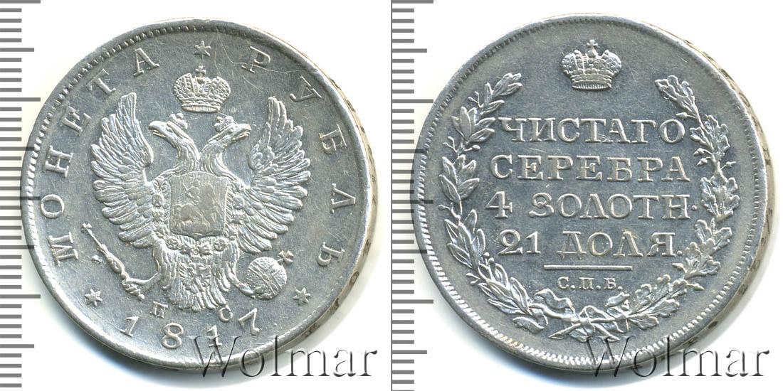 Радиальная надпись «МОНЕТА РУБЛЬ 1817» огибает периметр диска. Между фрагментами надписи вставлены шестиконечные звезды. Внутри информации о тираже расположено объемное изображение коронованного двуглавого орла и инициалы Павла Ступицына, минцмейстера монетного двора в Санкт Петербурге - «ПС».