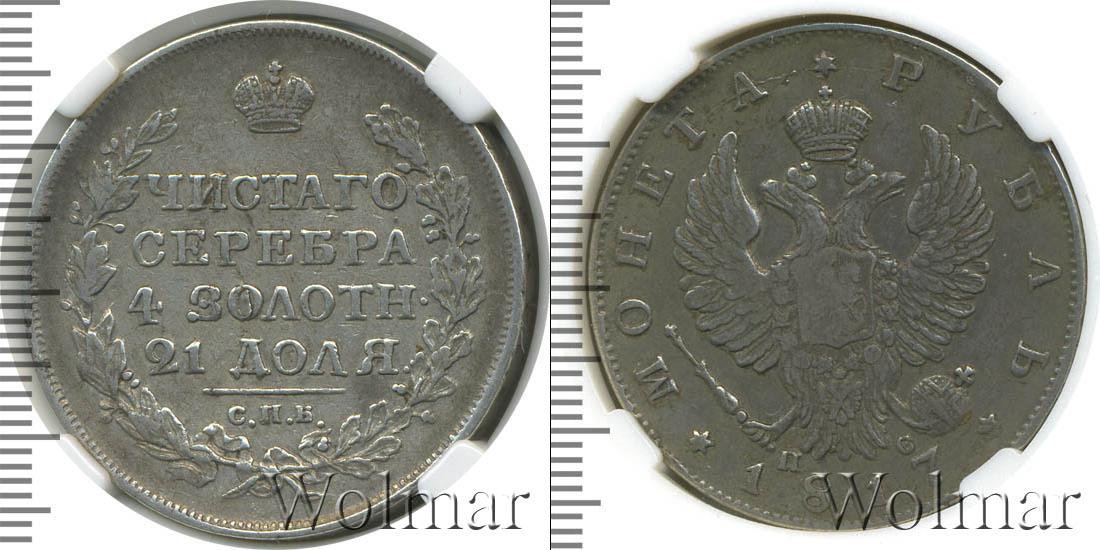 Радиальная надпись «МОНЕТА РУБЛЬ 1817» огибает периметр диска. Между фрагментами надписи вставлены шестиконечные звезды. Внутри информации о тираже расположено объемное изображение коронованного двуглавого орла и инициалы Павла Ступицына, минцмейстера монетного двора в Санкт Петербурге - «ПС».