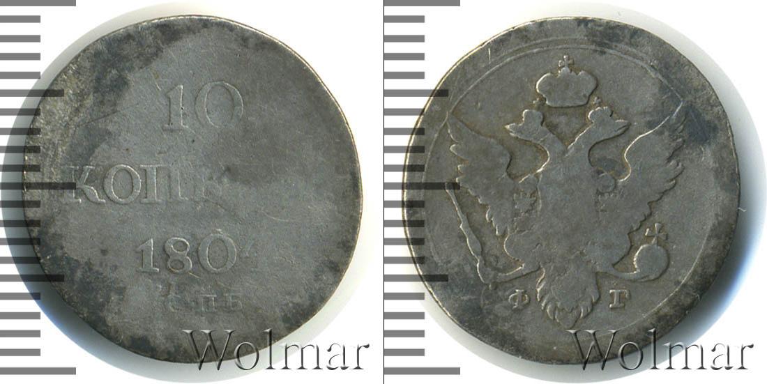 На реверсе изображен номинал монеты в 2 строки «10. КОП?ЕКЪ», ниже год чеканки «1804.» и аббревиатура монетного двора, выпустившего монету «С.П.Б.» По краю также, как и на аверсе идет двойной выпуклый ободок.