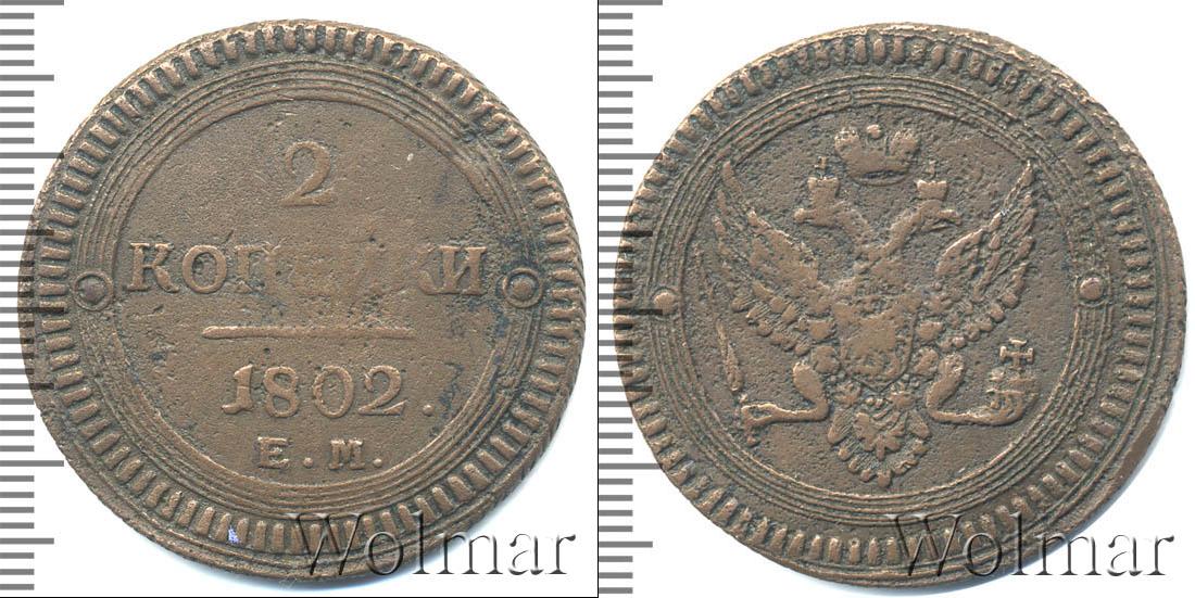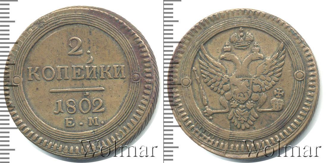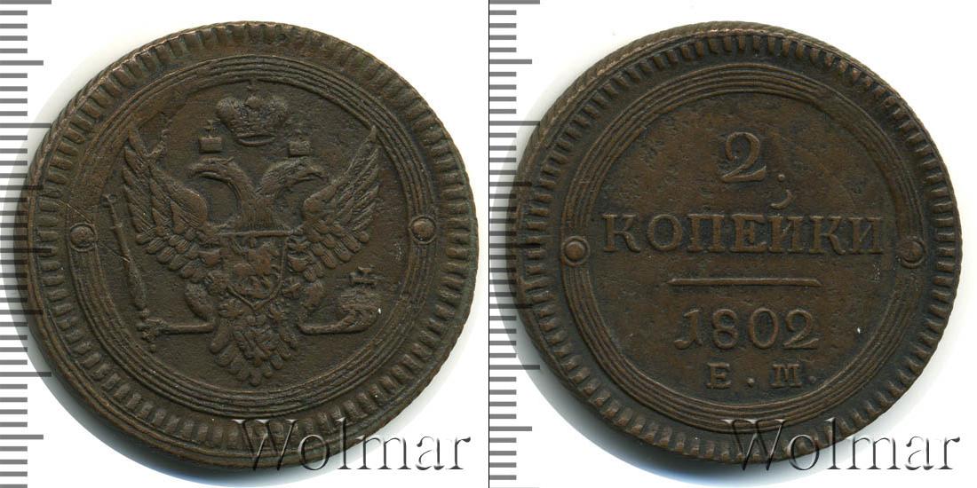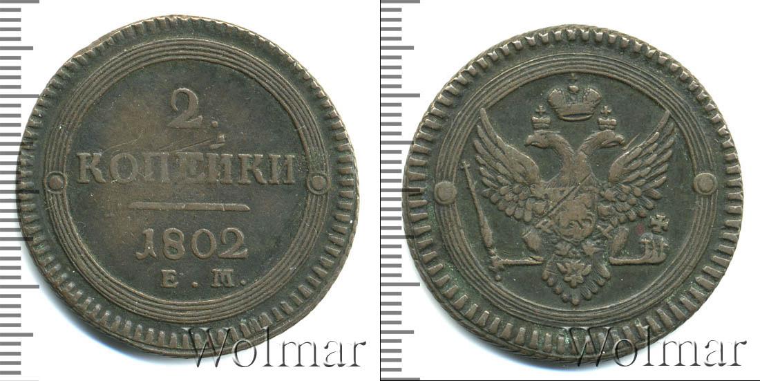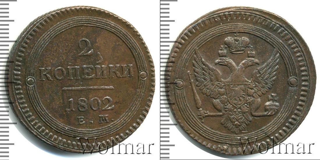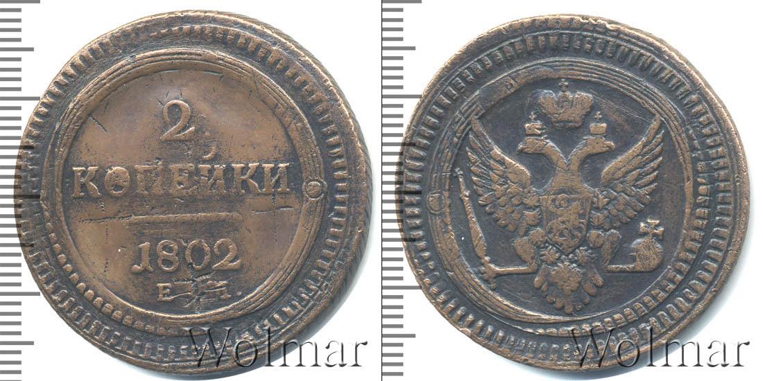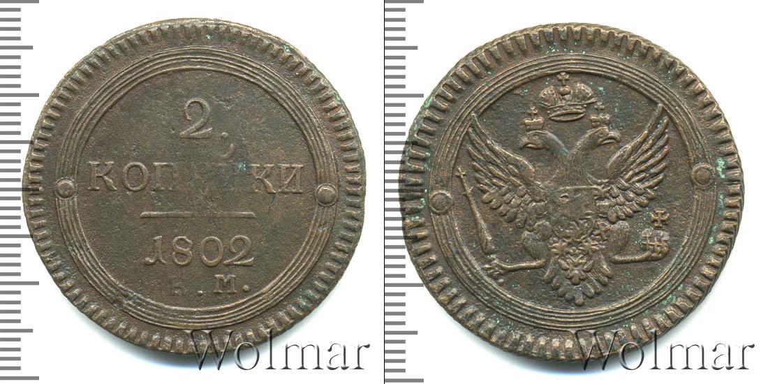 Вдоль зубчатого канта нарисован геометрический орнамент в виде обода из пяти параллельных окружностей разного диаметра. Слева и справа симметрично выгравированы декоративные элементы. Остальная поверхность диска – гладкая. Исключения составляют две надписи «2 КОПЪЕКИ», «1802» и прямая линия.