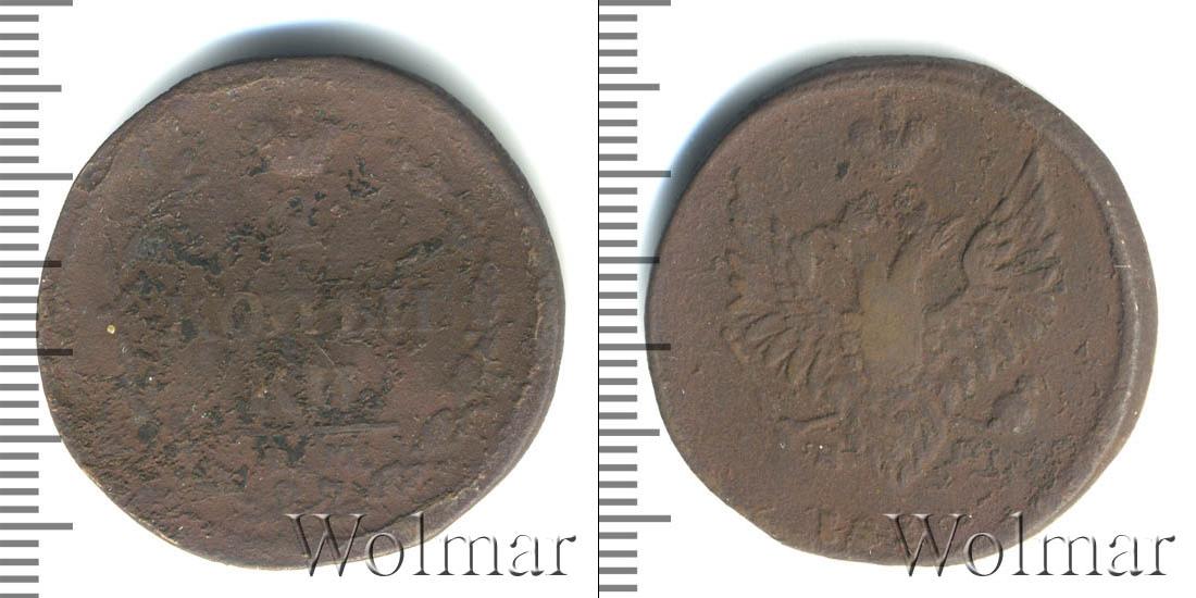 В верхней части изображена Корона Российской Империи, под ней цифра «2», ниже идет в 2 стоки «КОП?И» и «КИ», в самом низу отделенной фигурной чертой выбит инициалы монетного двора «К.М.» Справа и слева композицию обрамляют лавровая и дубовая ветви. Вдоль края идет узор из мелких точек.