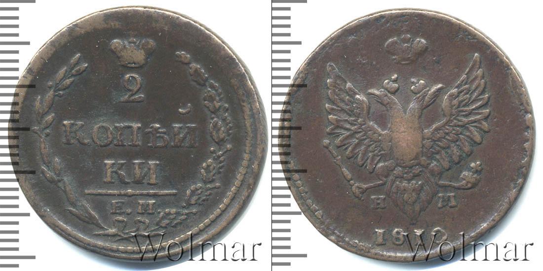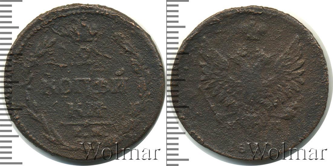 В верхней части изображена Корона Российской Империи, под ней цифра «2», ниже идет в 2 стоки «КОП?И» и «КИ», в самом низу отделенной фигурной чертой выбит инициалы монетного двора «К.М.» Справа и слева композицию обрамляют лавровая и дубовая ветви. Вдоль края идет узор из мелких точек.