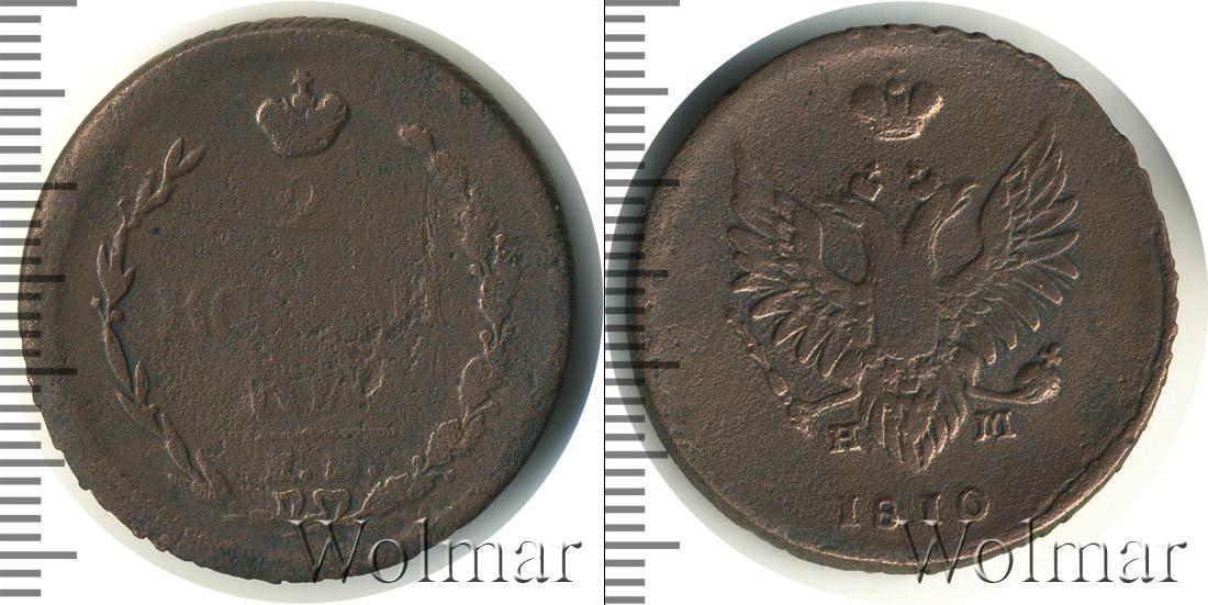 В центре изображен герб Российской Империи – двуглавый орел со скипетром и державой. Над орлом отчеканена Малая Корона Российской Империи, а в нижней части полукругом выбита дата эмиссии «1810». Возле хвоста орла отчеканены инициалы минцмейстера Михаила Клейнера – «М» слева от хвоста и «К» справа. По краю идет узор в виде точек.