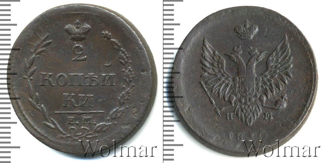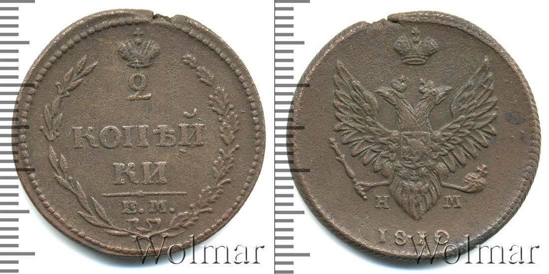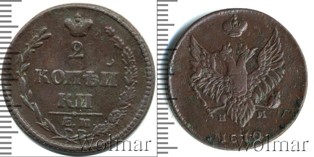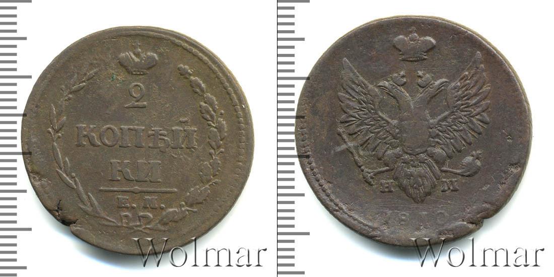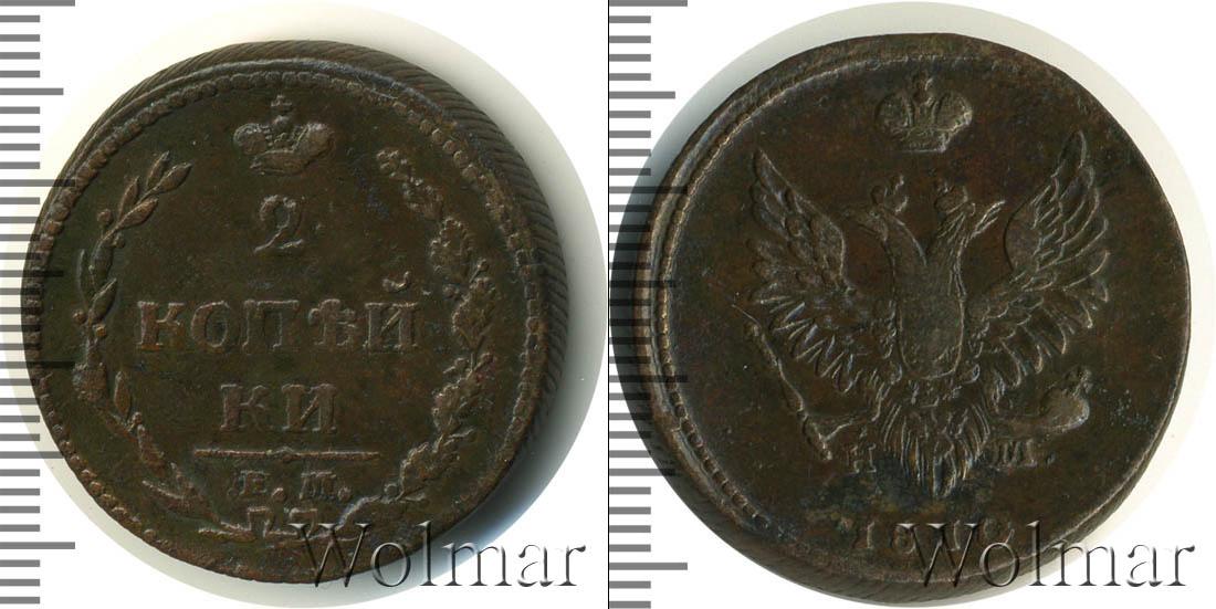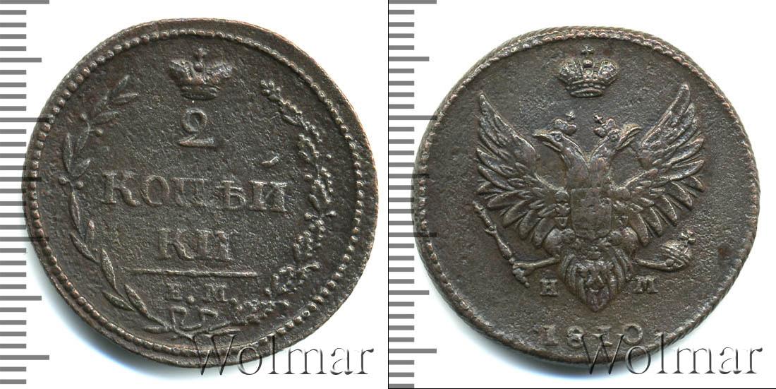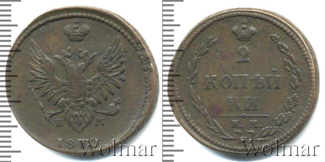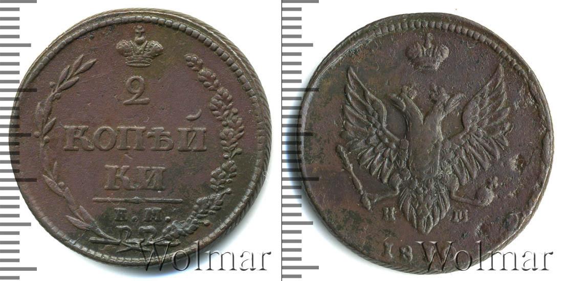 В верхней части изображена Корона Российской Империи, под ней цифра «2», ниже идет в 2 стоки «КОП?И» и «КИ», в самом низу отделенной фигурной чертой выбит инициалы монетного двора «К.М.» Справа и слева композицию обрамляют лавровая и дубовая ветви. Вдоль края идет узор из мелких точек.