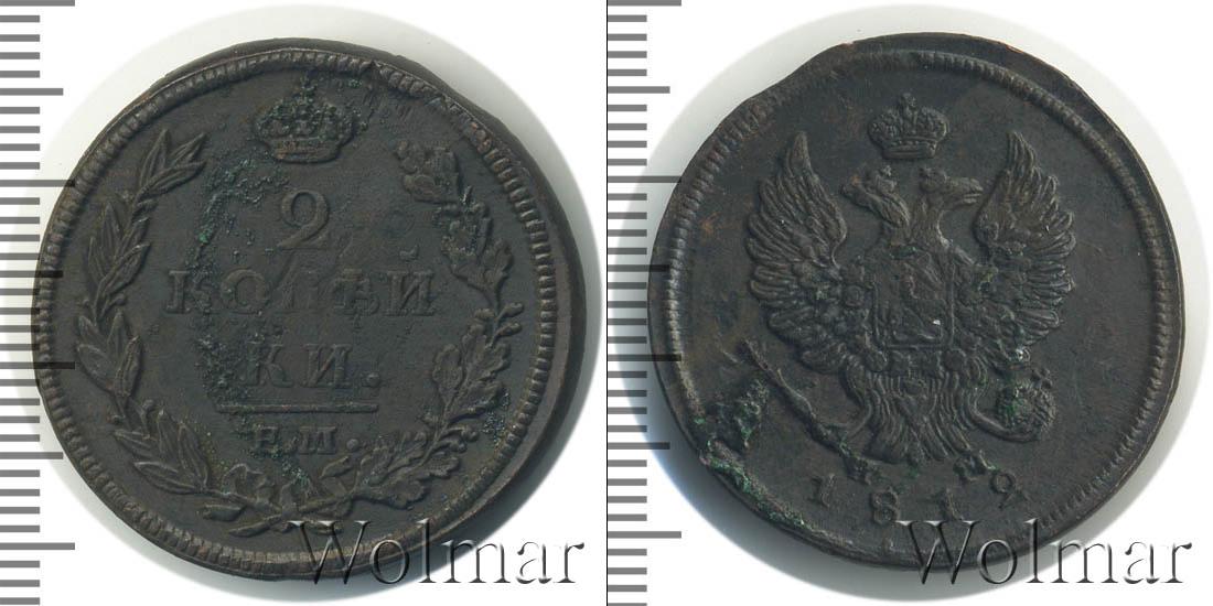 Медная монета массой 13,65 г. и диаметром 29 мм. В центре Государственный герб Российской Империи. Внизу отмечены инициалы минцмейстера – АМ. Рядом указание на дату эмиссии монеты – 1812. Вдоль канта диска идет зубчатый орнамент.