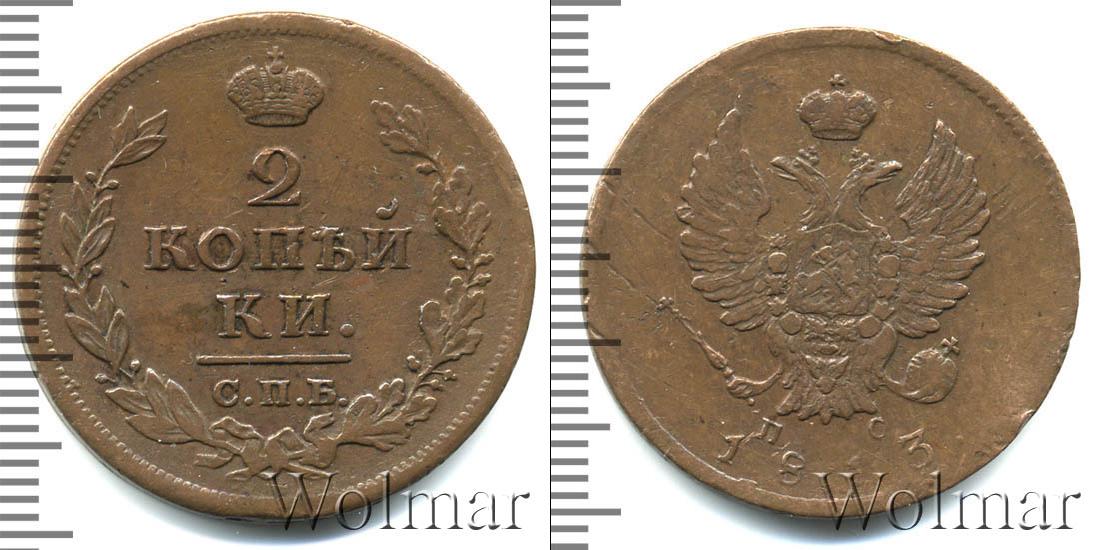 В верхней части диска отчеканена Большая корона Российской Империи. Под ней указание на номинал и монетный двор Санкт-Петербурга– 2 КОПЕЙКИ СПБ. Внизу стилизованное изображение лавровой и дубовой ветвей.