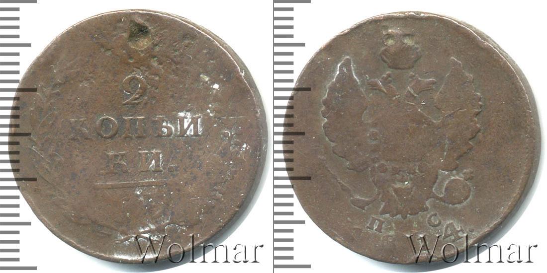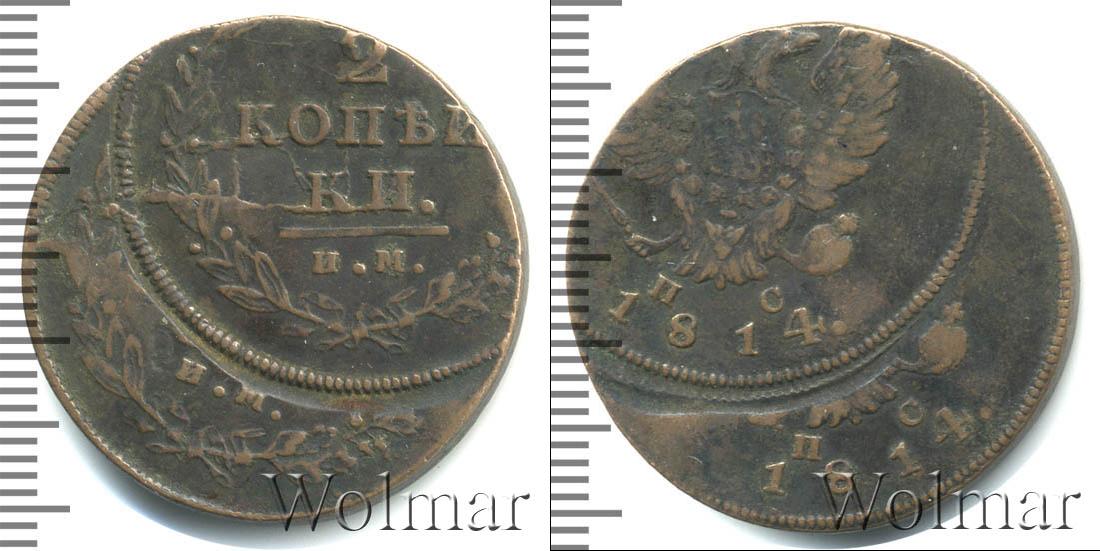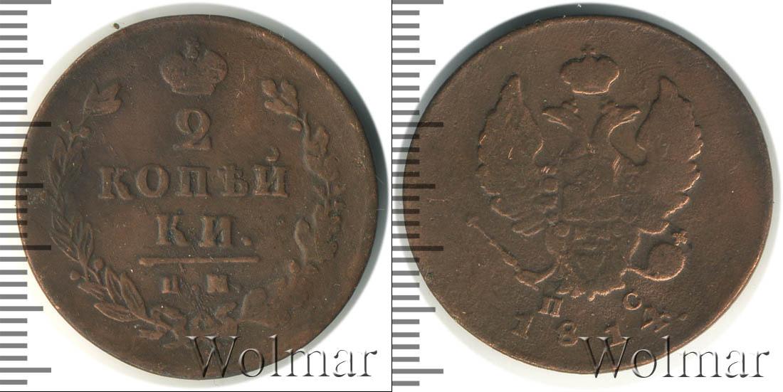Медная монета с изображением Большой короны Российской Империи, выпуклым узором из лавровой и дубовой ветвей и указание на номинал монеты (в центре отчеканено 2 КОПЕЙКИ). Под фигурной линией внизу обозначение монетного двора – ИМ.
