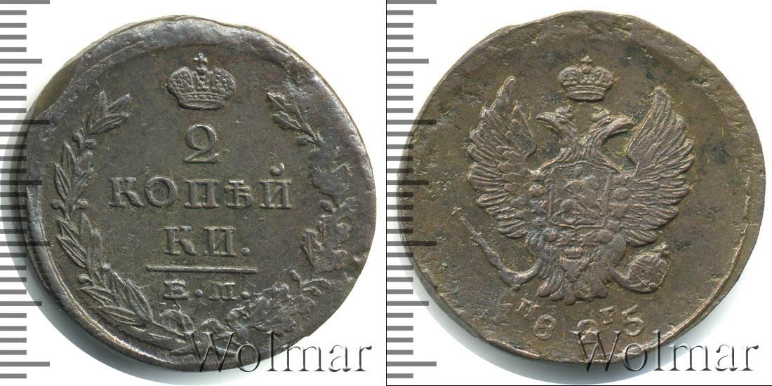 В центральной части диска указание на номинал и Екатеринбургский монетный двор: 2 КОПЕЙКИ ЕМ. Вверху детально прорисованная Императорская корона России. Внизу переплетенные между собой лавровая и дубовая ветви.