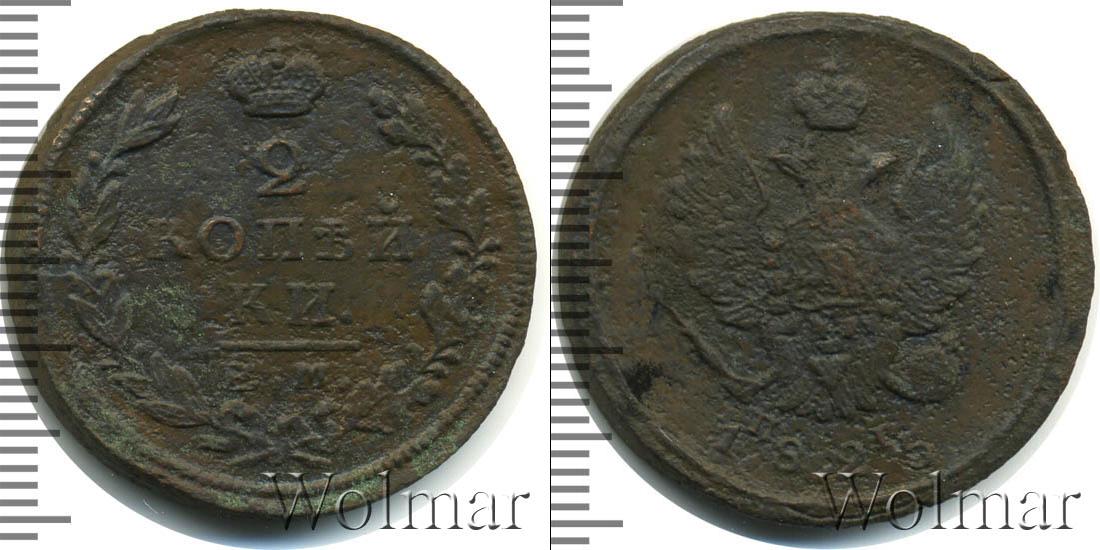 В центральной части диска указание на номинал и Екатеринбургский монетный двор: 2 КОПЕЙКИ ЕМ. Вверху детально прорисованная Императорская корона России. Внизу переплетенные между собой лавровая и дубовая ветви.