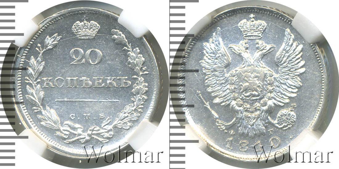 В слабе NGC. Из коллекции Хорна. Санкт-Петербургский монетный двор. Биткин редкость - R, №# 745.184, тираж 250 000, Уздеников №# 1390, Петров - 1 рубль. По каталогу Wolmar # 121/1. 20 копеек СПБ ФГ