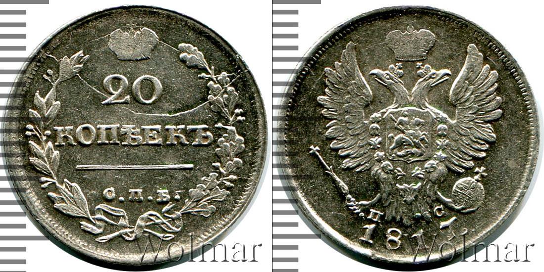 Цена монеты 20 копеек 1817 года в городе Москва на сегодня, 17 марта 2026 года