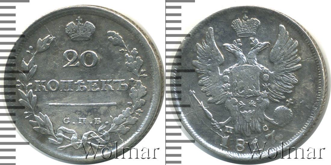 Удары по канту. Царапины на поле. Санкт-Петербургский монетный двор. Биткин №# 745.196, тираж 1 545 000, Уздеников №# 1442. По каталогу Wolmar # 121/9. 20 копеек СПБ ПС