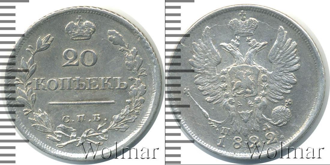 Кабинетная патина. Санкт-Петербургский монетный двор. Биткин №# 745.203, тираж 2 100 000, Уздеников №# 1475. По каталогу Wolmar # 121/15. 20 копеек СПБ ПД