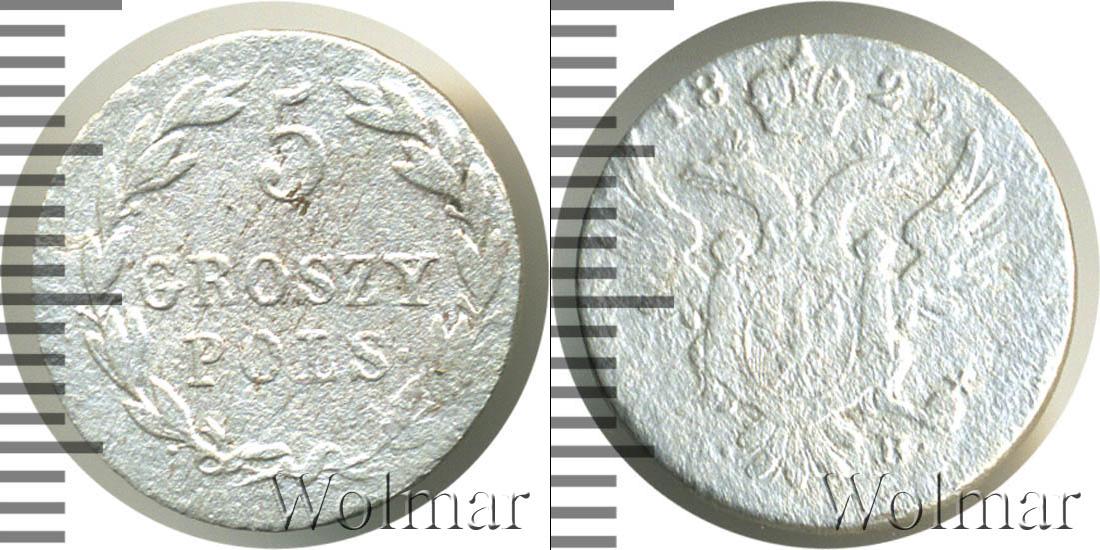 Варшавский монетный двор. Биткин №# 791.860, тираж 1 281 611, Уздеников №# 4509. Wolmar # 432/8 5 грошей. Польша IB