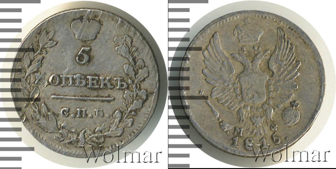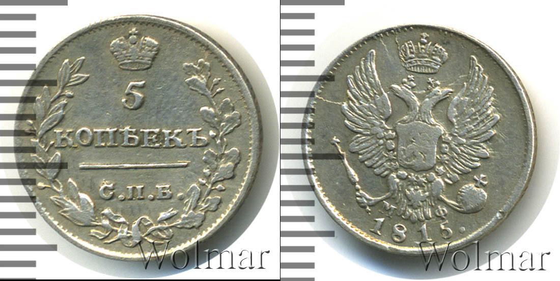 Масса готового изделия составляет 1,03 г., а диаметр равен 15,1 мм. По центру детально показан Государственный герб Российской Империи. Внизу полукругом начертано: 1815. Это дата эмиссии партии. Также на диске отмечены инициалы минцмейстера – МФ.