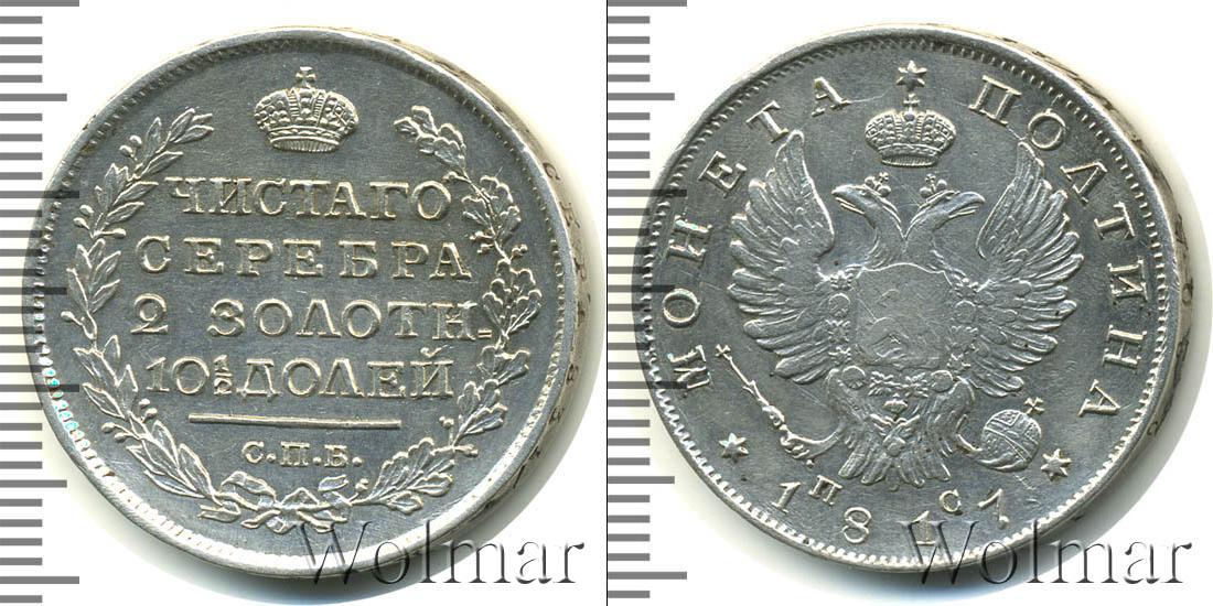 По краю диска идет узор из множества точек. В центре гербовая эмблема Российской Империи. Слева и справа начертано: МОНЕТА ПОЛТИНА. Внизу отмечена дата эмиссии партии: 1817. Рядом указаны инициалы минцмейстера – ПС.