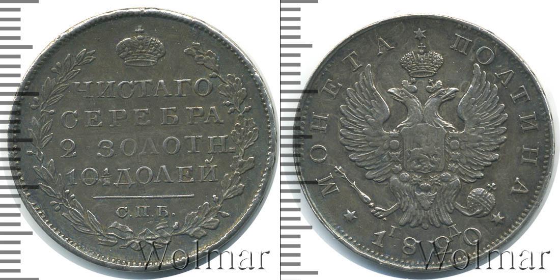 В центре гербовая эмблема Российской Империи. Слева и справа начертано: МОНЕТА ПОЛТИНА. Внизу отмечена дата эмиссии партии: 1820. Рядом указаны инициалы минцмейстера – ПД.