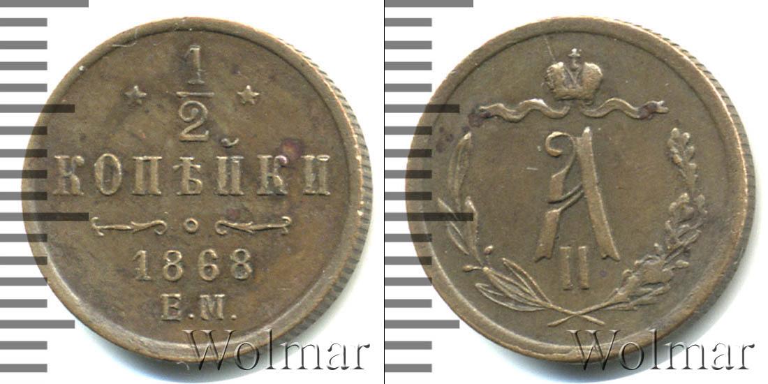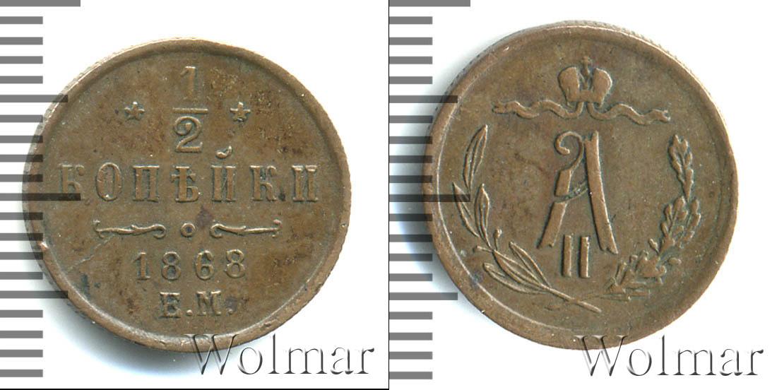 Екатеринбургский монетный двор. Биткин №# 895.433, тираж 1 190 000, Уздеников №# 3697. Wolmar # 203/2. 1/2 копейки ЕМ