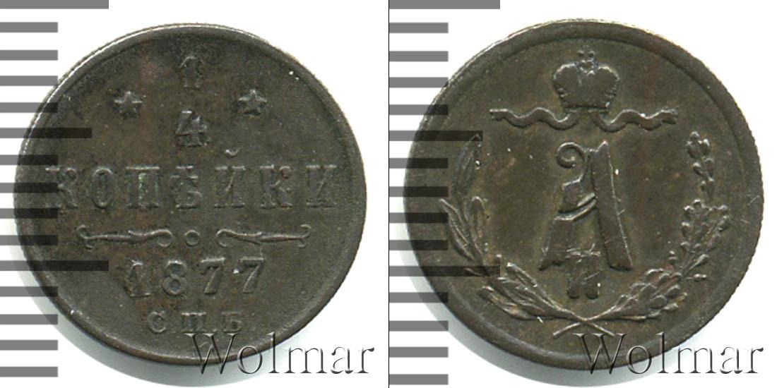 1877 Легкая коррозия, пятна. 1/4 копейки СПБ