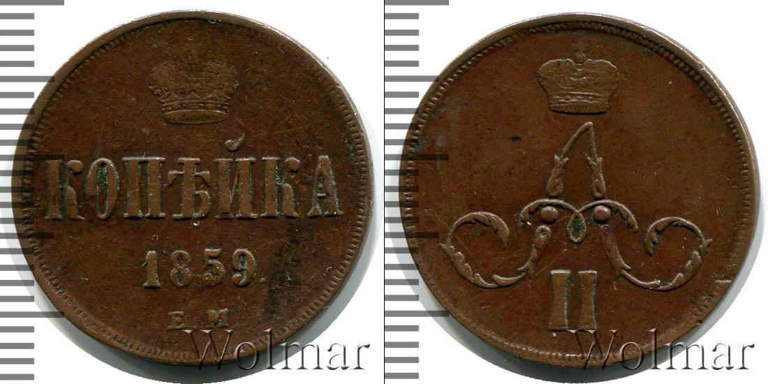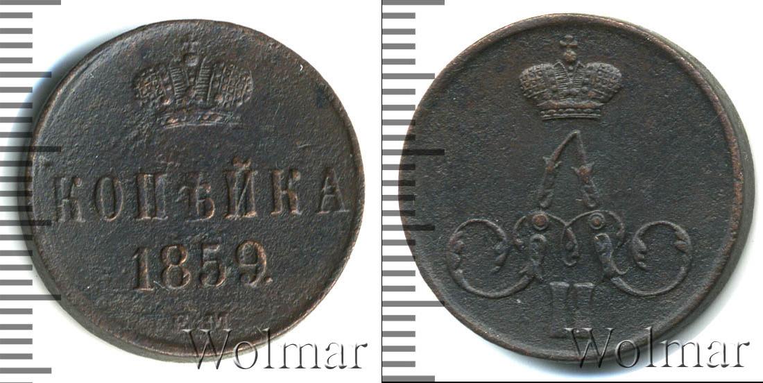 Цена монеты 1 копейка 1859 года в городе Москва на сегодня, 17 марта 2026 года