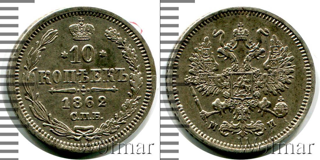 Санкт-Петербургский монетный двор. Биткин №# 882.198, тираж 5 800 009, Уздеников №# 1811. По каталогу Wolmar # 139/9. 10 копеек СПБ МИ