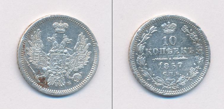 Санкт-Петербургский монетный двор. Биткин №# 877.64, тираж 3 110 003, Уздеников №# 1740. По каталогу Wolmar # 138/36. 10 копеек. Отверстие СПБ ФБ