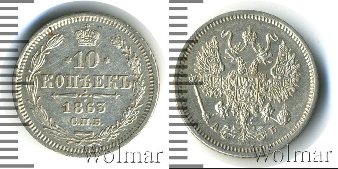 Цена монеты 10 копеек 1863 года в городе Москва на сегодня, 12 марта 2026 года
