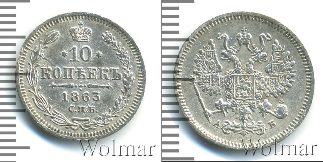 Цена монеты 10 копеек 1863 года в городе Москва на сегодня, 16 декабря 2025 года