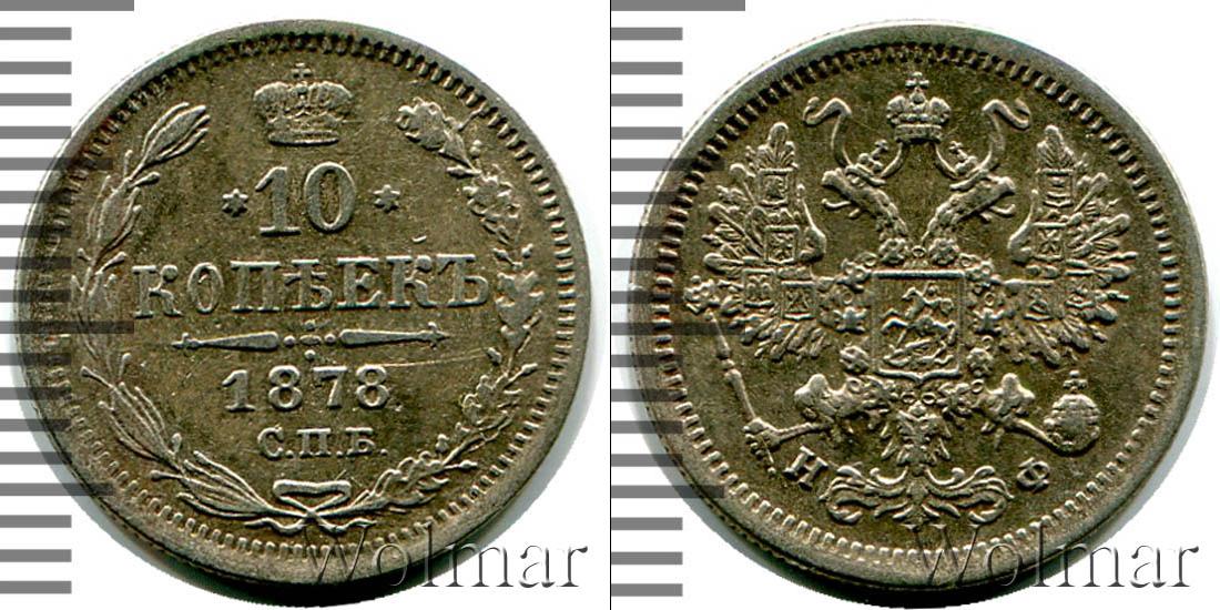Санкт-Петербургский монетный двор. Биткин №# 884.264, тираж 6 920 006, Уздеников №# 1941. По каталогу Wolmar # 139/28. 10 копеек СПБ НФ