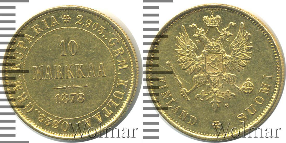 Гельсингфорсский монетный двор. Биткин редкость - R, №# 908.618, тираж 254 000, Уздеников редкость - "черта", №# 4714. Нормативная проба - Au`900, нормативный вес - 3,23 гр, чистого золота - 2,91гр; По каталогу Wolmar # 447/1. 10 марок. Финляндия R S