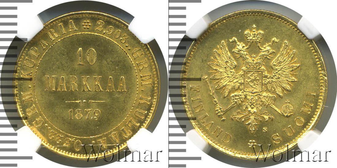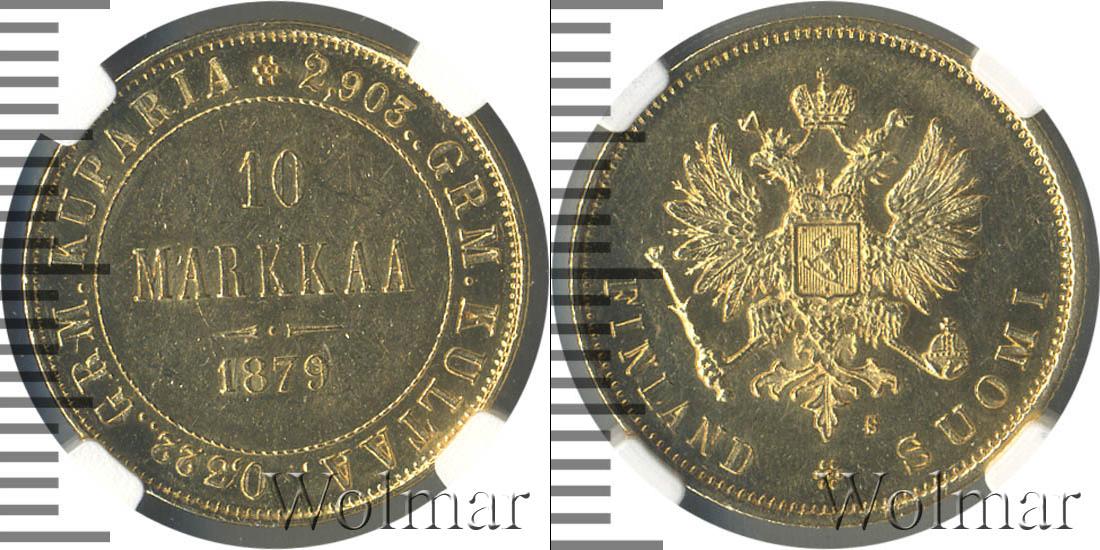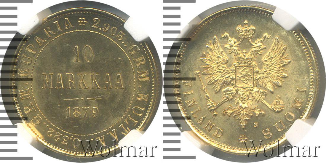 В слабе NGC. Гельсингфорсский монетный двор. Биткин №# 908.615, тираж 200 000, Уздеников редкость - "черта", №# 4716. Нормативная проба - Au`900, нормативный вес - 3,23 гр, чистого золота - 2,91гр; По каталогу Wolmar # 447/2. 10 марок. Финляндия S