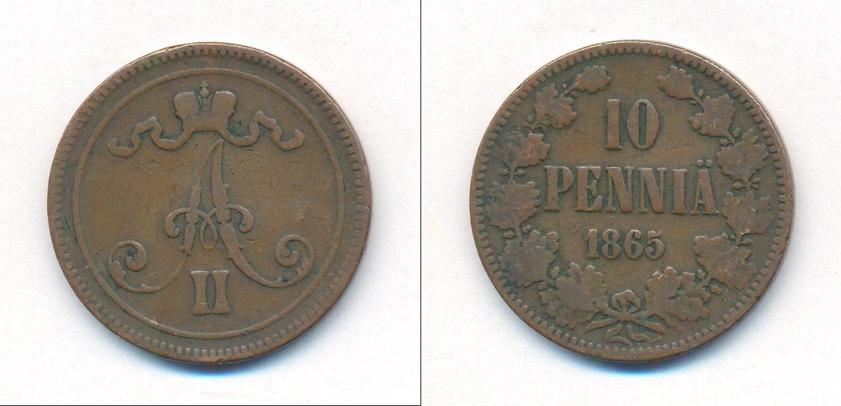 Забоинки, патина, гурт забоины 10 пенни Финляндия