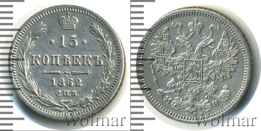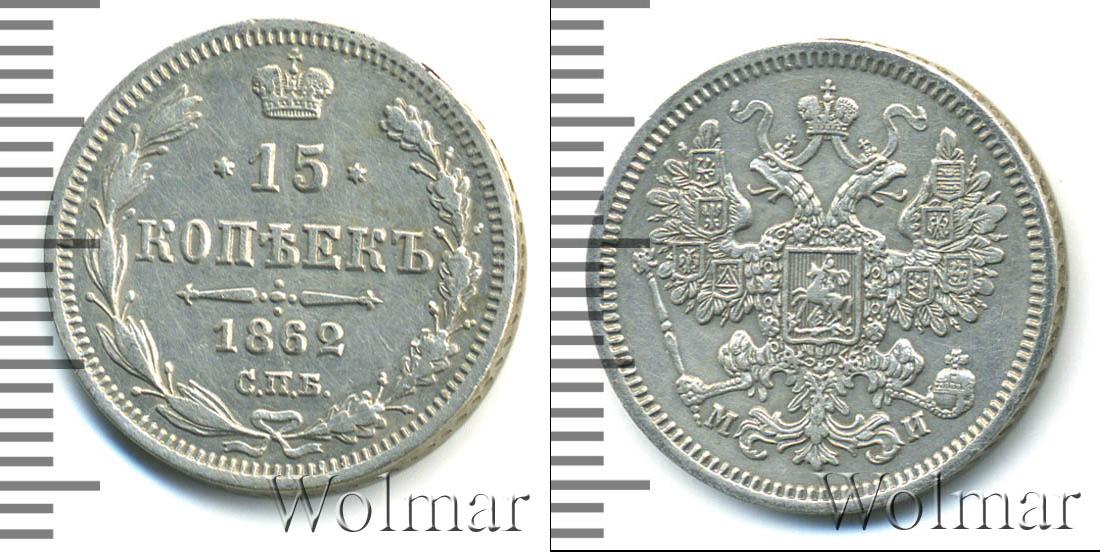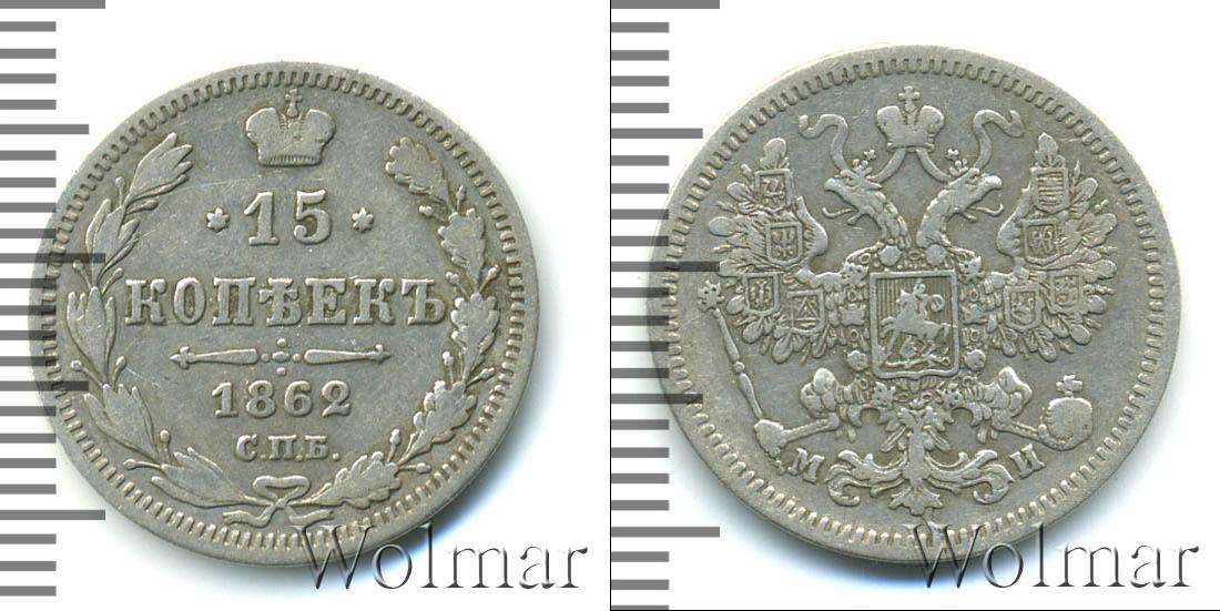 Цена монеты 15 копеек 1862 года в городе Москва на сегодня, 11 марта 2026 года