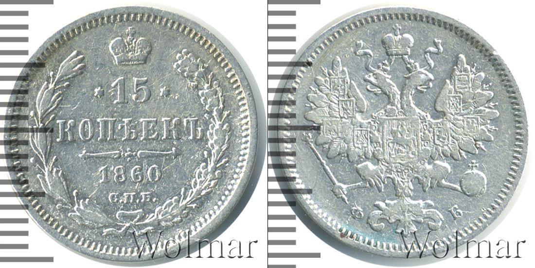 Санкт-Петербургский монетный двор. Биткин №# 882.183, "крест державы не касается крыла, хвост уже, корона меньше", тираж 4 480 003, Уздеников №# 1777. Wolmar # 127/2. 15 копеек СПБ ФБ