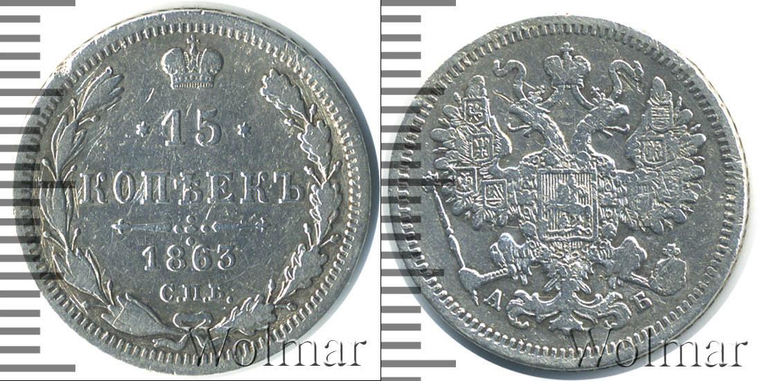 Чистка. Санкт-Петербургский монетный двор. Биткин №# 882.188, тираж 9 960 003, Уздеников №# 1817. По каталогу Wolmar # 127/8. 15 копеек СПБ АБ