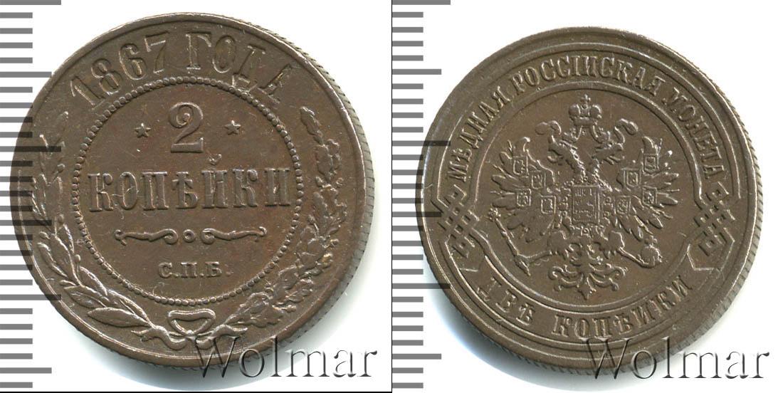 Цена монеты 2 копейки 1867 года в городе Москва на сегодня, 12 марта 2026 года
