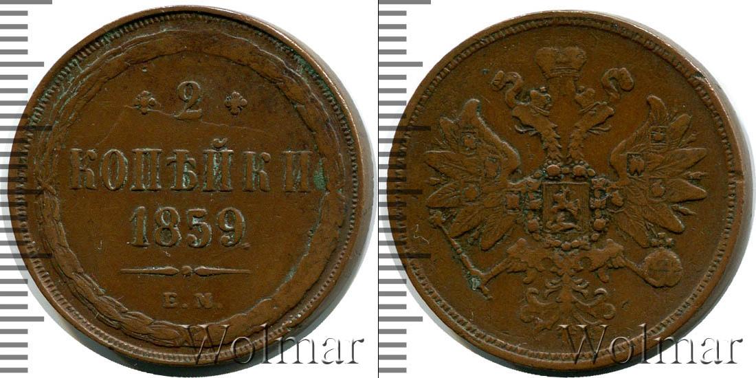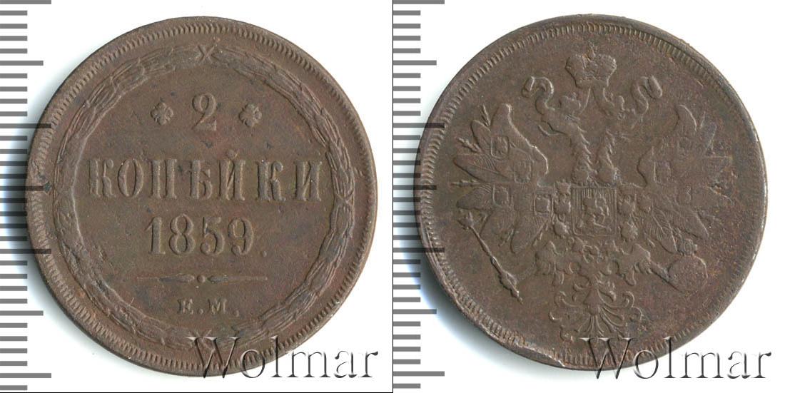 Екатеринбургский монетный двор. Биткин №# 890.339, тираж 14 772 000, Уздеников №# 3595, монета образца 1860 г. Wolmar # 175/12 2 копейки ЕМ |