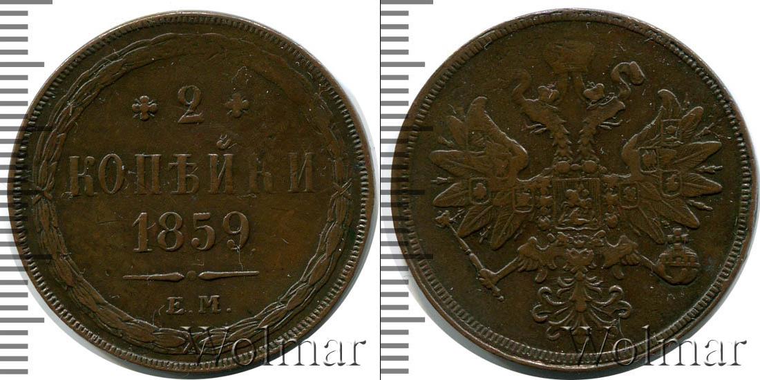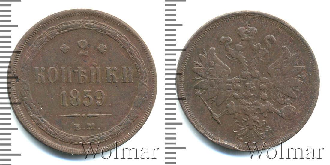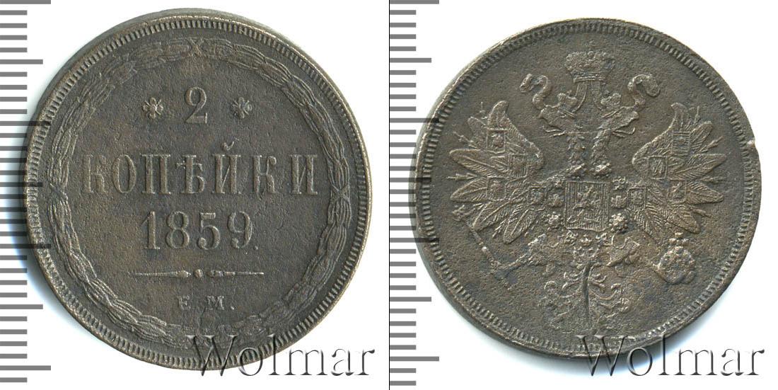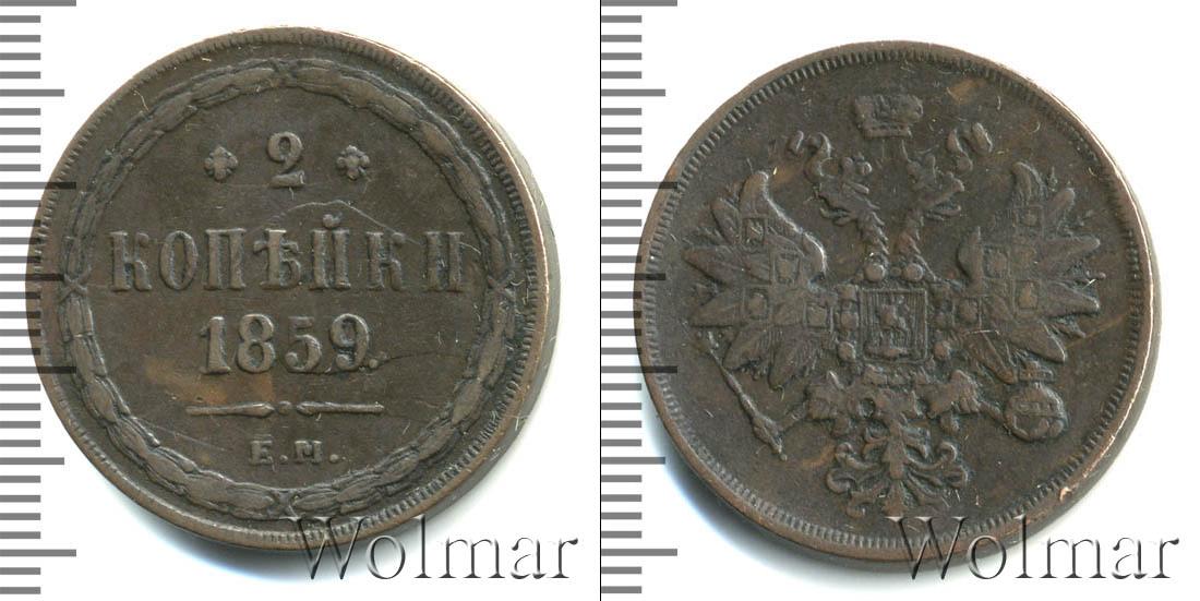 Екатеринбургский монетный двор. Биткин №# 890.339, тираж 14 772 000, Уздеников №# 3595, монета образца 1860 г. Wolmar # 175/12 2 копейки ЕМ