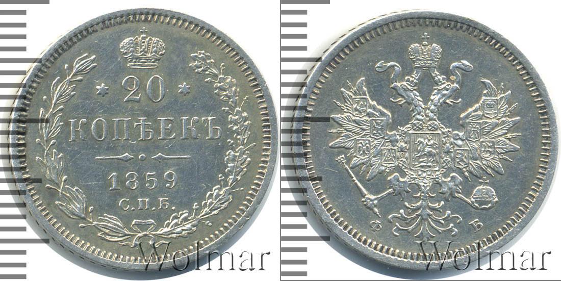 Санкт-Петербургский монетный двор. Биткин №# 881.160, тираж 3 960 005, Уздеников №# 1759. По каталогу Wolmar # 124/1. 20 копеек СПБ ФБ |