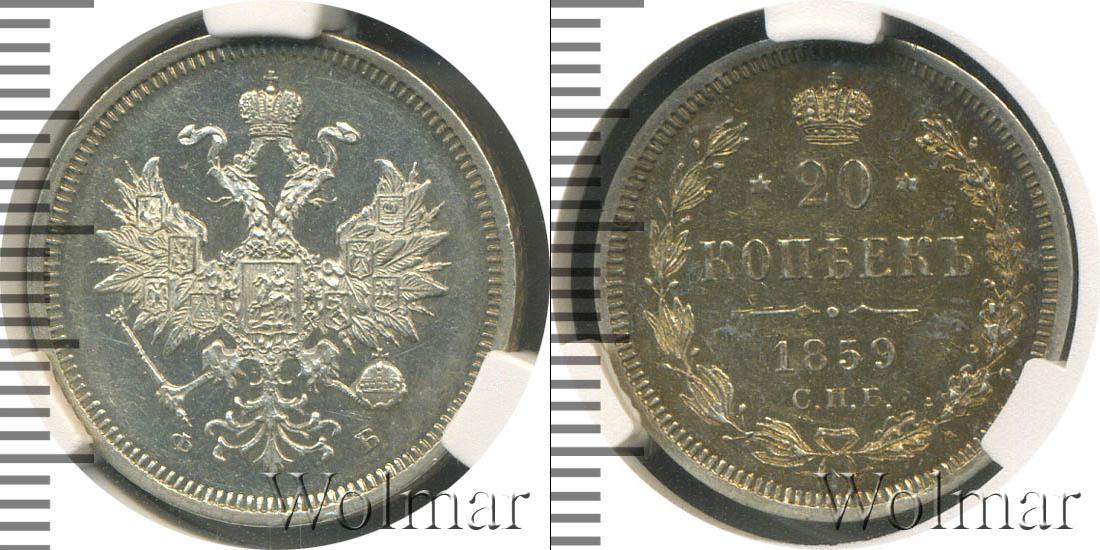 В слабе CPRC. Санкт-Петербургский монетный двор. Биткин №# 881.160, тираж 3 960 005, Уздеников №# 1759. По каталогу Wolmar # 124/1. 20 копеек СПБ ФБ