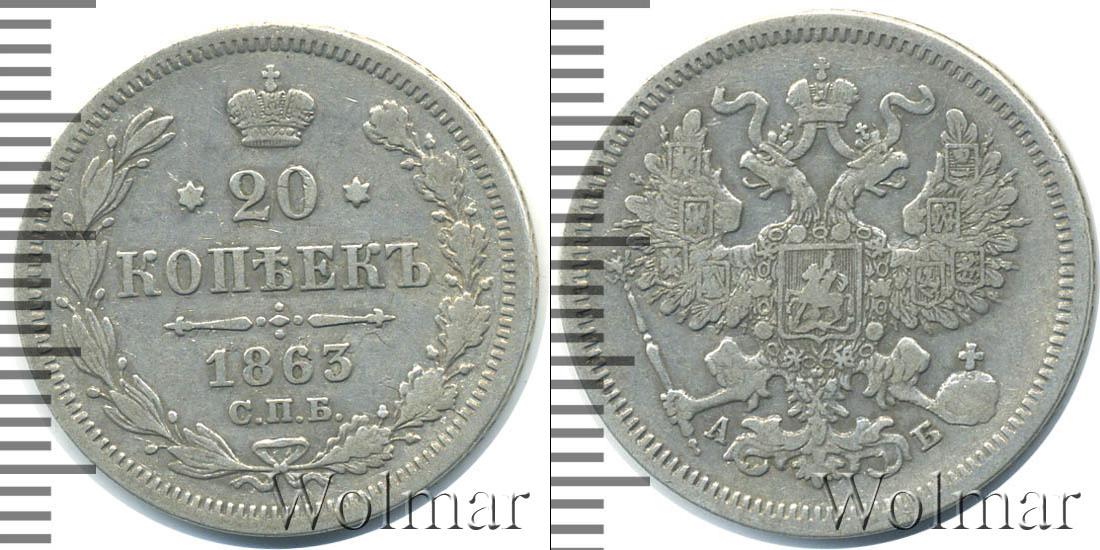 Санкт-Петербургский монетный двор. Биткин №# 881.176, тираж 19 230 003, Уздеников №# 1816. По каталогу Wolmar # 124/12. 20 копеек СПБ АБ