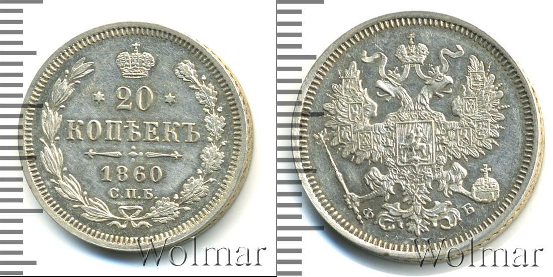 Цена монеты 20 копеек 1860 года в городе Москва на сегодня, 18 апреля 2026 года