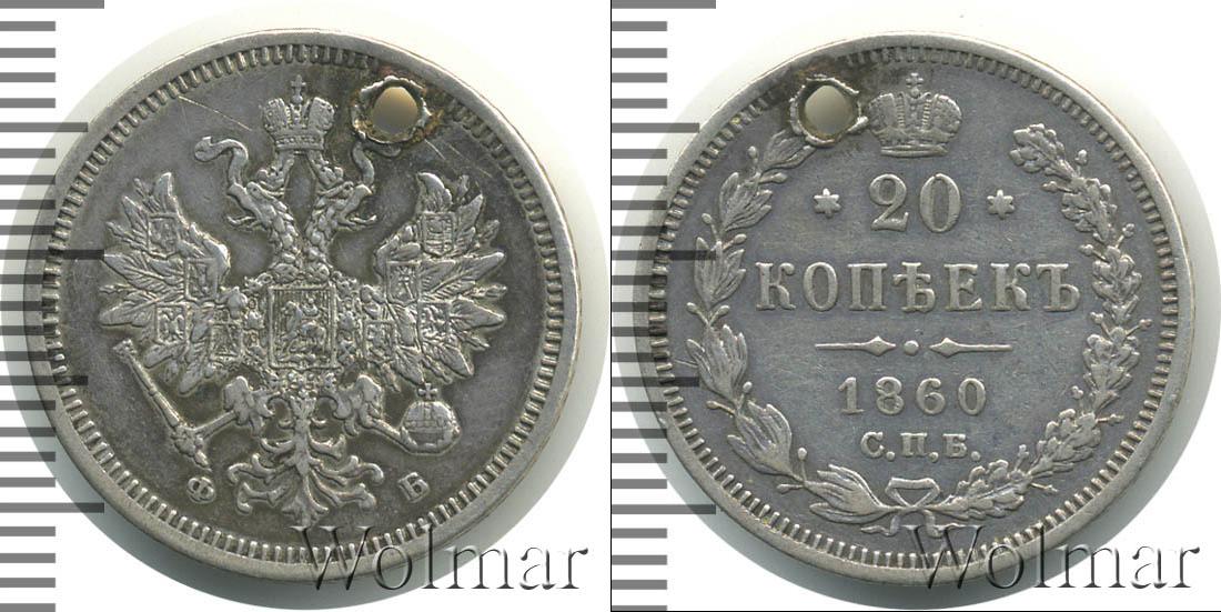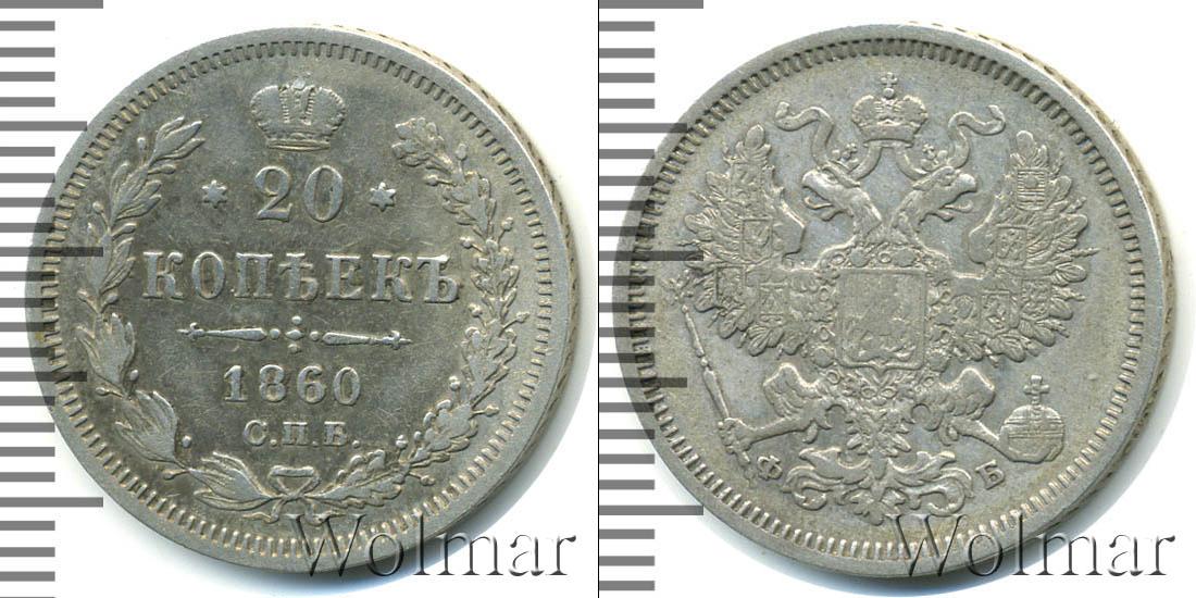 Цена монеты 20 копеек 1860 года в городе Москва на сегодня, 18 апреля 2026 года