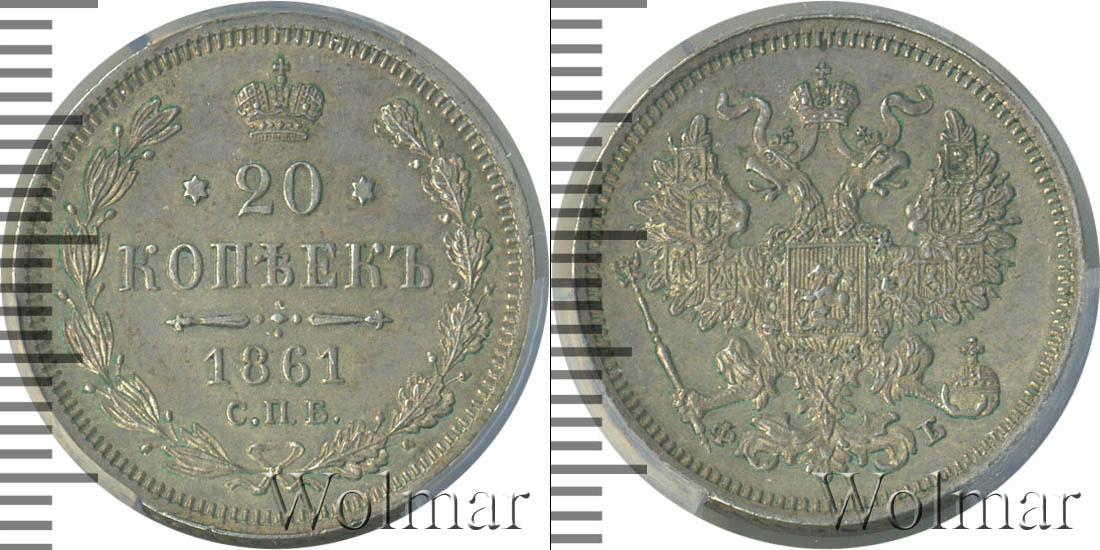 Цена монеты 20 копеек 1861 года в городе Москва на сегодня, 18 апреля 2026 года